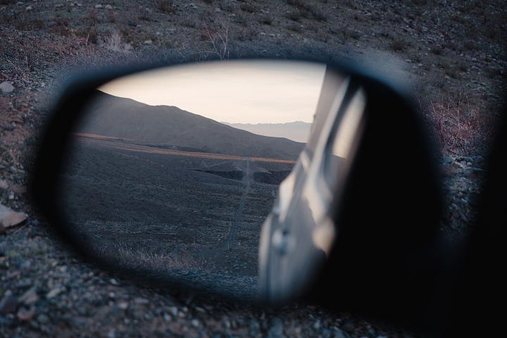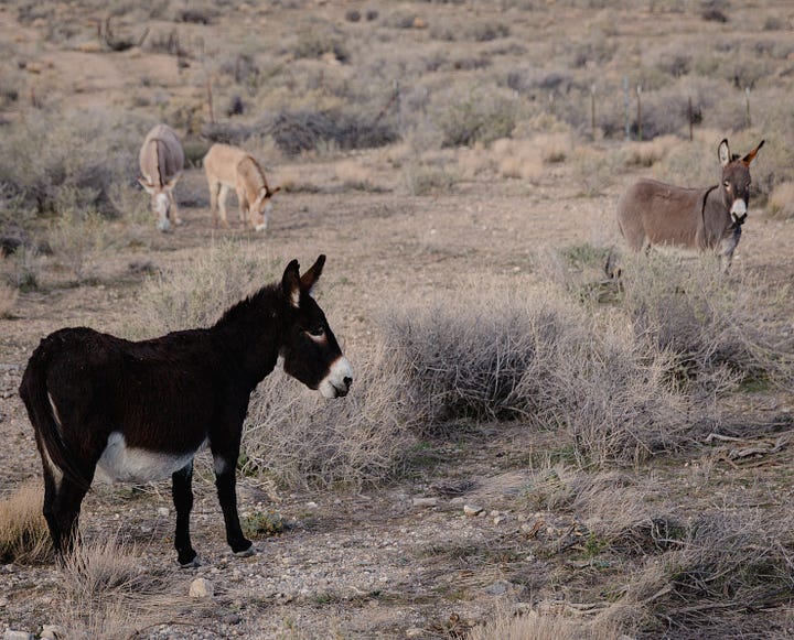 After descending Clark Mountain we trekked south, past some wild burros, and camped in a box canyon. Dinner was Costco pupusas and we watched Andor on my laptop in bed—we love a dusty notebook, but we’re not Luddites.