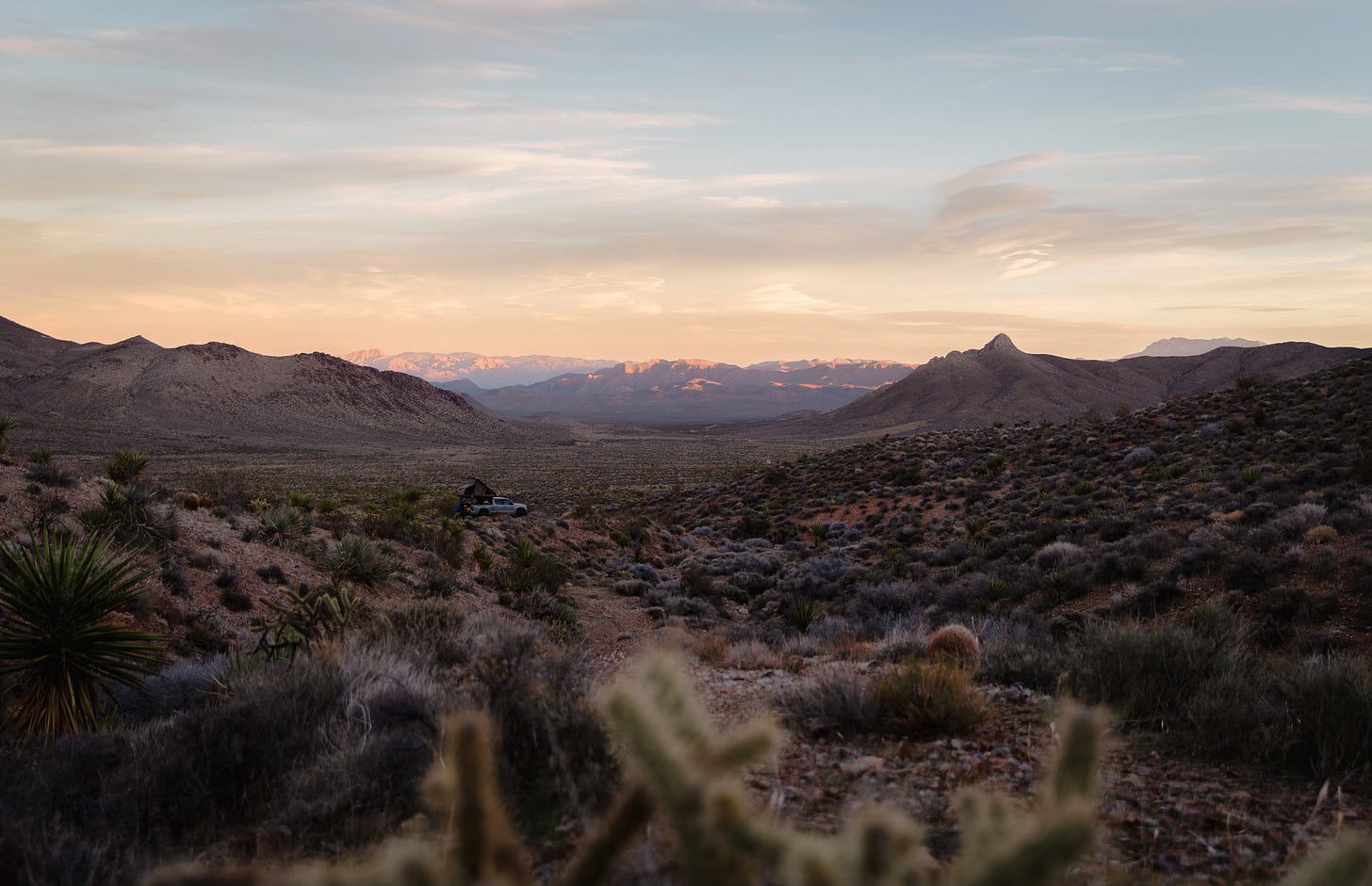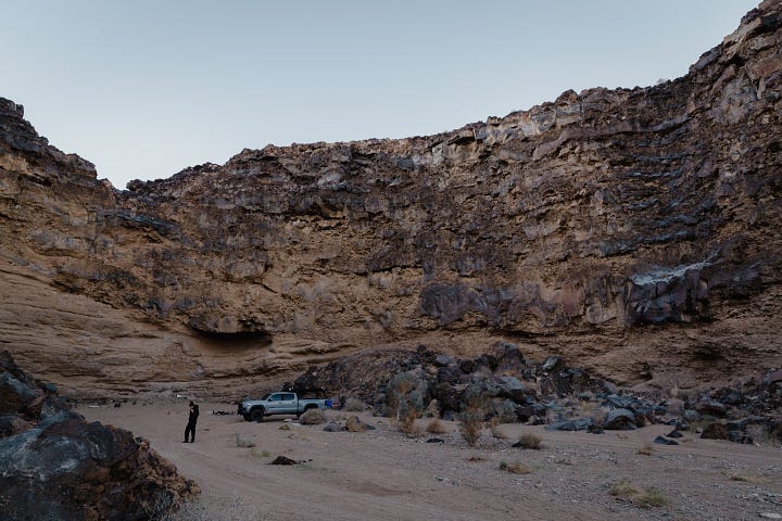 Last week Molly and I took a short trip through the Mojave desert. A few days of bouncing around the back roads and boulders exploring a zone we would have previously sworn we knew well—but once we dug in, realized we hardly knew at all. We scrambled in canyons, soaked in a semi-secret hot spring, scampered to the top of the Mojave’s highest peak, and found some epic campsites.