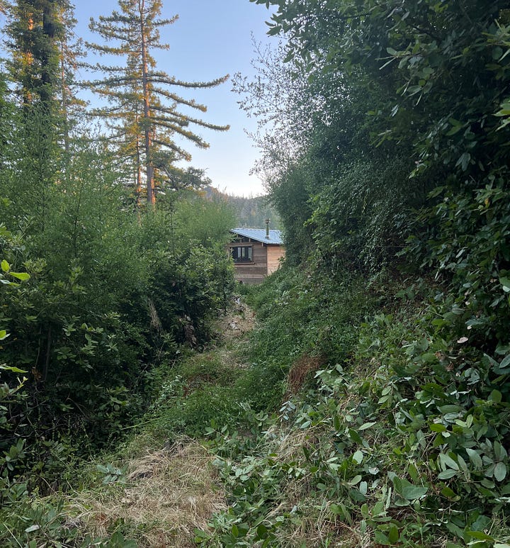 Our acreage is wooded and steep and has only a few paths and pads carved into it. Molly and I have been accepting of these qualities and have sailed on the momentum of what we inherited. Over the years we put those accessible spaces to use and when we needed more flat ground, we built it from wood. But then a wildfire unbuilt it and we never really addressed that particular shortcoming—we just recognized our loss of traversable real estate and the reality that milling about our space now meant more uneven footing and a perpetual subconscious tension.